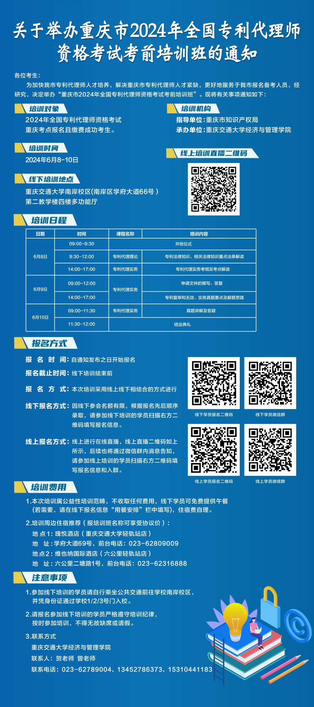 关于举办重庆市2024年全国专利代理团队格考试考前培训班的通知