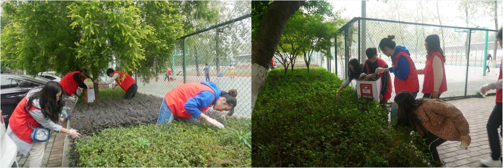 志愿者深入绿化带找寻垃圾 支部书记带头捡垃圾