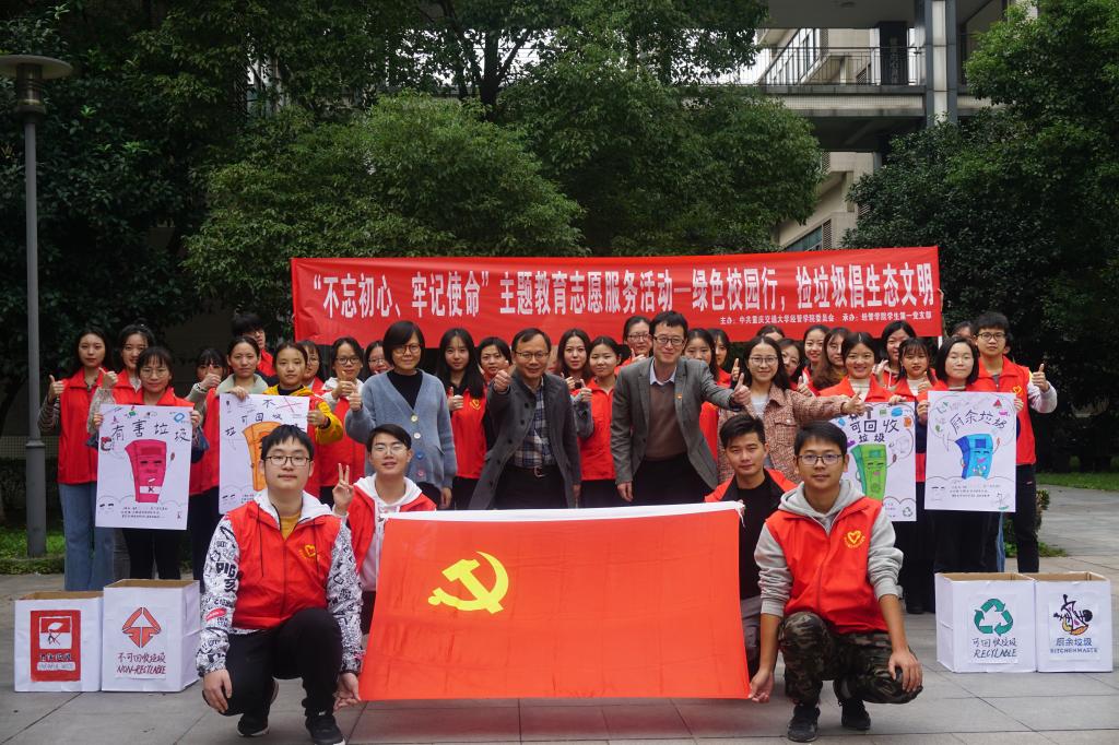 11月15日下午,为进一步落实“不忘初心、牢记使命”主题教育精神,由公司党委主办、suncitygroup太阳新城员工第一党支部承办的“绿色校园行 捡垃圾倡生态文明”志愿服务活动在南岸校区成功举办。