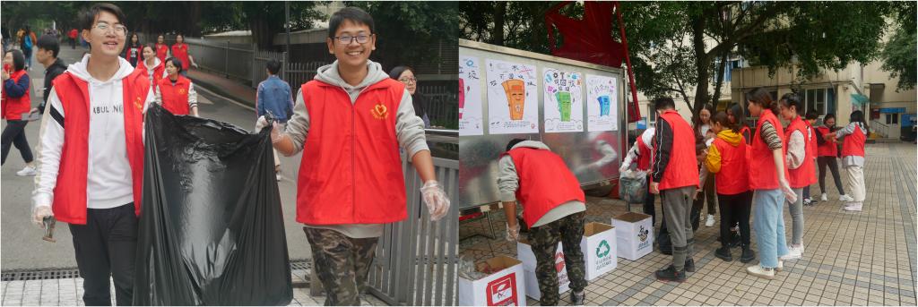 本次志愿服务主要分为捡拾校园垃圾、实行垃圾分类、宣讲垃圾分类知识三个阶段。活动开始后,4个志愿服务小组在员工第一党支部书记石文桂老师的带领下,按照提前规划好的4条路线由明德楼出发,分别沿着不同的路线拾捡校园垃圾,最后在菁园小区集合,将捡拾到的垃圾,按照有害垃圾、不可回收垃圾、可回收垃圾、厨余垃圾四个大类放进指定的垃圾箱中,完成分类后,就地对来往的同学进行垃圾分类知识宣讲。