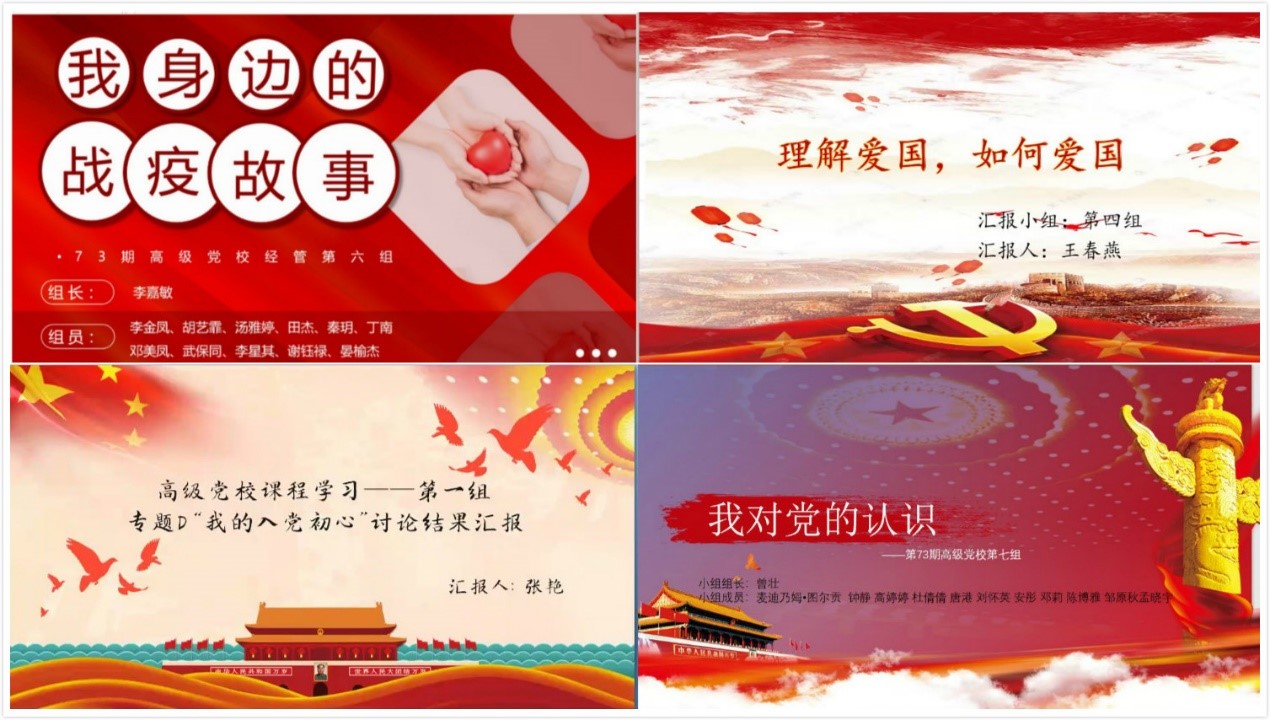 在讨论中,广大参训学员聚焦战“疫”故事,感受先进典型的模范力量,深深被一线劳动者的奉献精神所感动。谈到爱国主义教育,有人认为爱国是由爱国情感引发、爱国觉悟引导而产生出一种行为;有人认为爱国就是爱祖国的全部,祖国的山河、祖国的人民、祖国的文化等等;有人认为爱国分为感性爱国和理性爱国,并表示只有两者结合才能激发正确的爱国行为。畅聊对党的认识,两个先锋队、一个根本宗旨、三个代表等关键词接踵而至。寻觅入党初心,多数学员赞同“受到优秀党员熏陶、报效祖国、为人民服务、积极奉献”等观点。