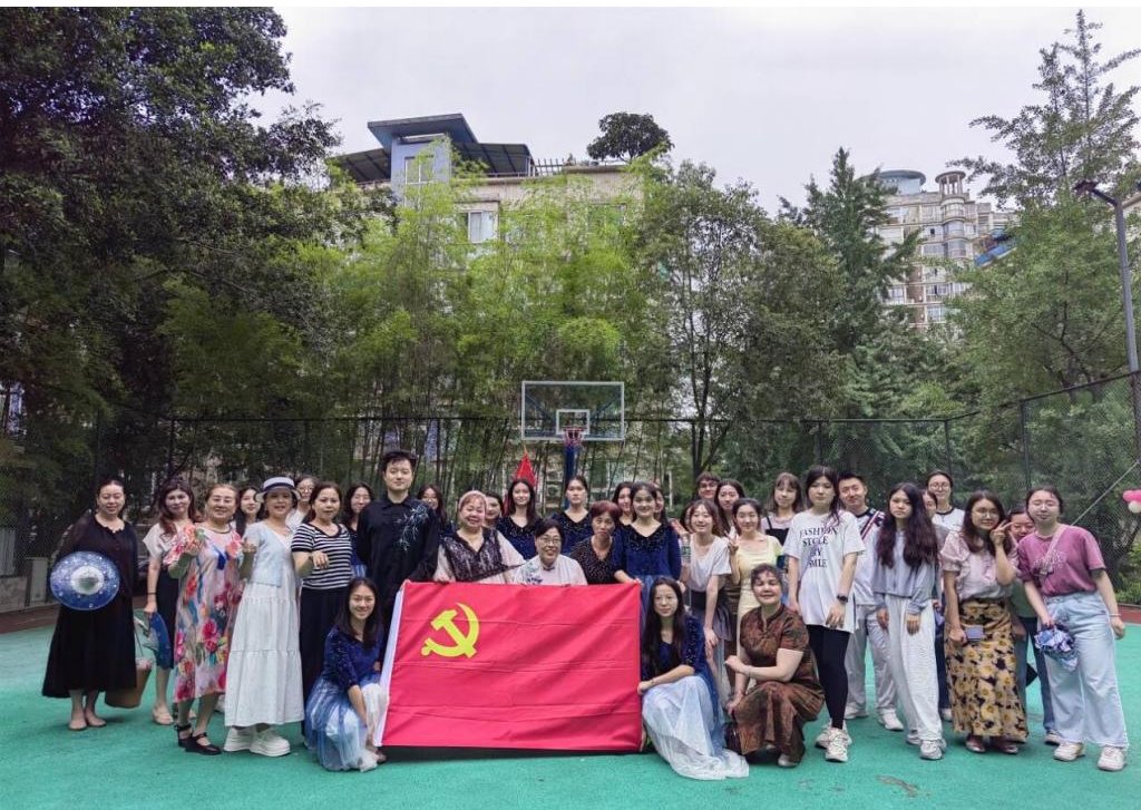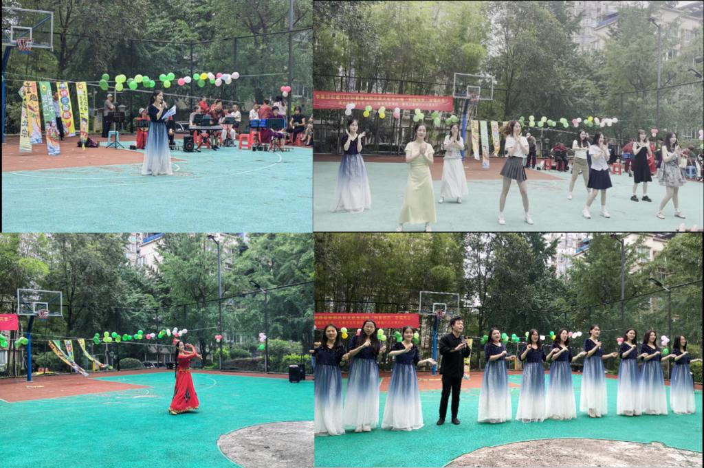 活动现场,青年学子以艺术展演架起跨代际沟通桥梁。开场舞《桃花朵朵开》以跃动的青春姿态展现时代朝气,维吾尔族员工演绎的新疆舞《眉开眼笑》则通过民族艺术促进文化交融。压轴节目《微微》合唱环节,员工党员们邀请社区老人共同登台,老少携手唱响“微微晨光点亮这喧嚣世界”,将现场气氛推向高潮。