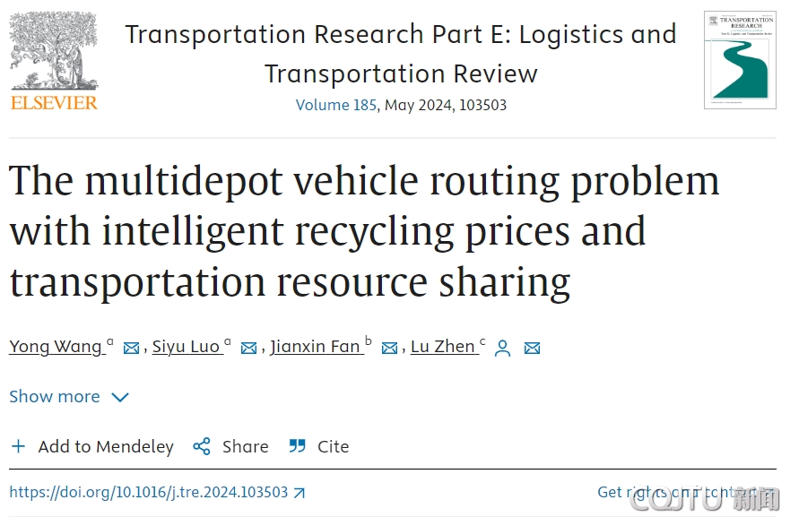该成果是王勇教授团队依托国家自然科学基金项目,在大规模物流运输网络数智化调度研究方向上的新成果。王勇教授团队近年来已发表SCI期刊论文100余篇,其中,中科院SCI一区期刊论文39篇,TR-Part期刊论文5篇,ESI高被引论文5篇。