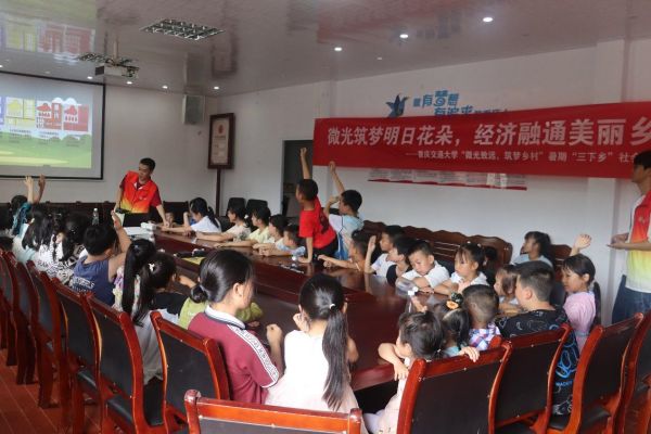 近日,suncitygroup太阳集团“微光致远,筑梦乡村”暑期“三下乡”社会实践团队在云阳县清水土家族乡大堰村开展以“微光筑梦明日花朵,经济融通美丽乡村”为主题的“3+1”微课活动。实践团10余位成员育人成己,陪伴引领全村50余位小朋友立德立身,朋辈互育,促进德智体美劳全面发展。