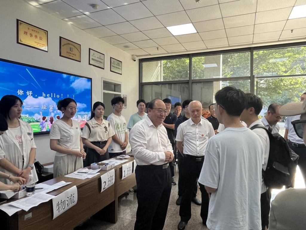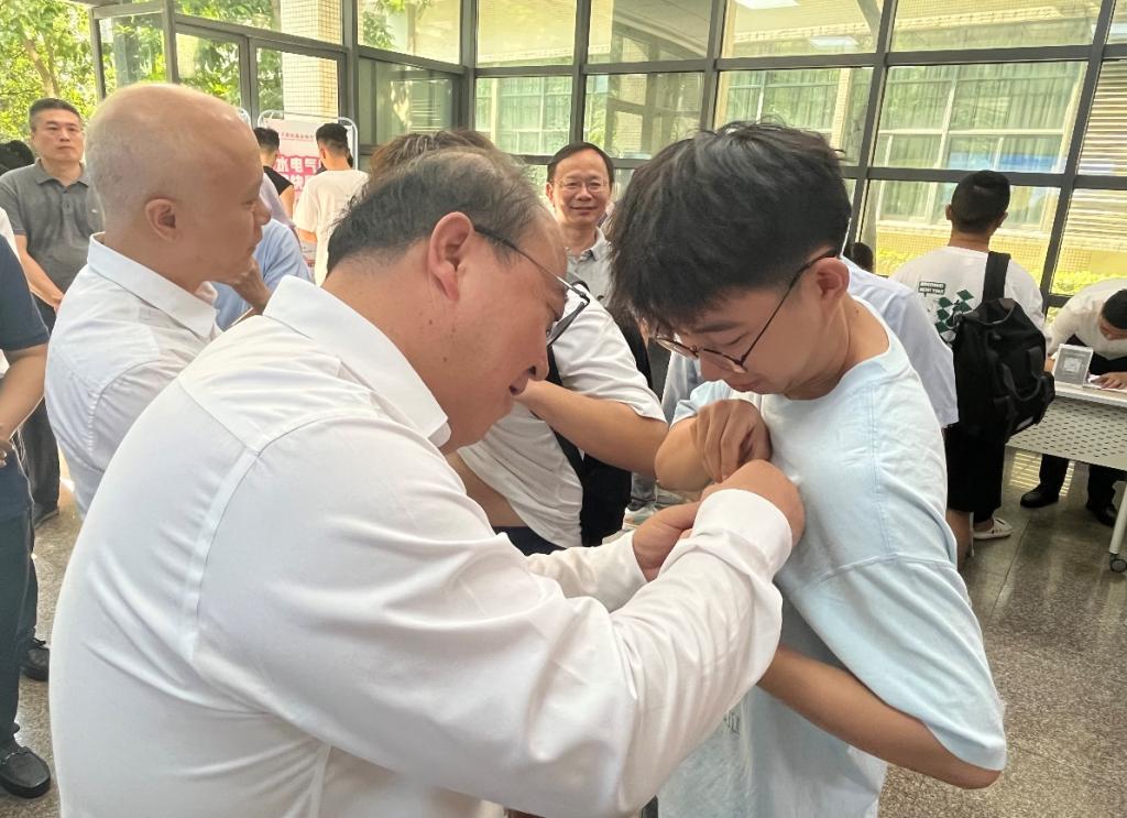 报到期间,公司党委书记宫辉、副董事长黄承锋与研究生院、学工部等相关职能部门负责人到公司迎新现场指导,热情欢迎新同学。宫辉书记与新生亲切交流,为新生佩戴校徽,给新生传授“研学”之道。