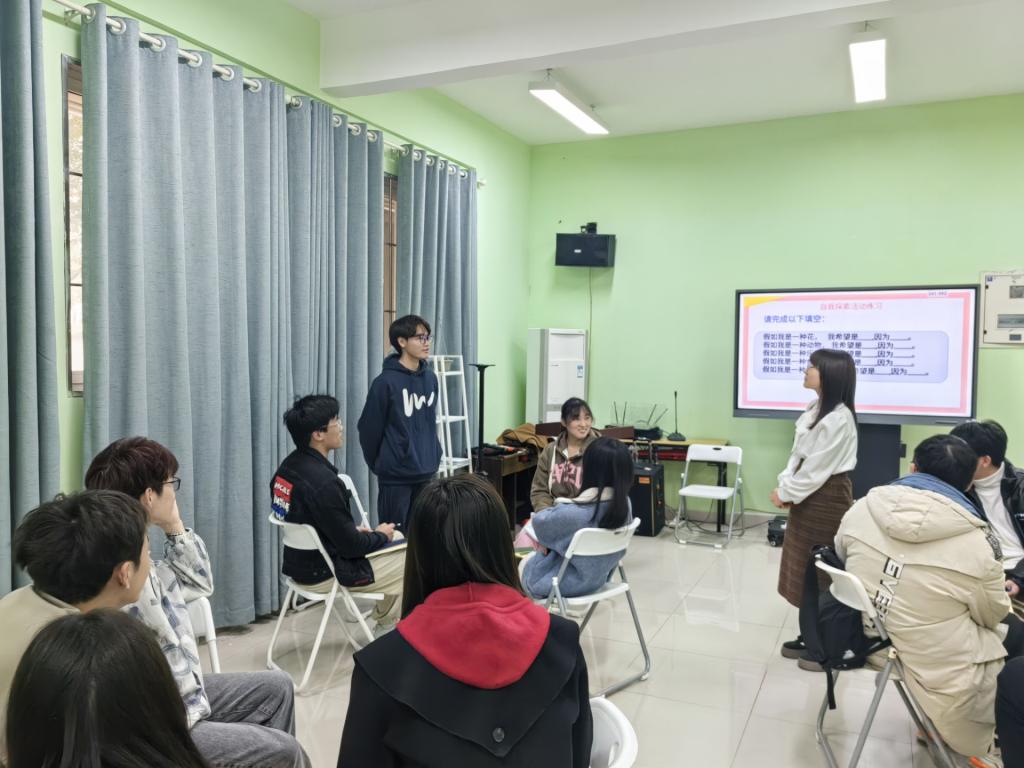 活动过程中,团体带领老师谢吉琴、彭义雯从“小组回归”“假期经历分享”“新学期·新起点·新计划”“成长价值连接”四个主题指导团体成员积极交流互动。基于团体设置,同学们敞开心扉真诚表达,有效连接互相支持,充分发挥了朋辈小组互助成长的功能。