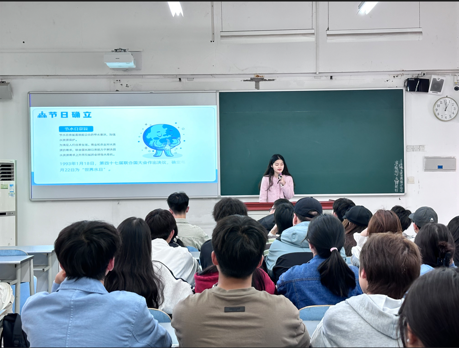 第二场活动——水资源管理专题讲座在A01教学楼举行。员工们通过精心准备的PPT和视频资料,向同学们详细介绍了全球水资源现状、水资源危机对人类社会的影响,以及个人可以采取的节水措施。此外,讲座还设置了互动环节,鼓励同学们分享日常生活中的节水小妙招,现场气氛活跃,交流热烈。