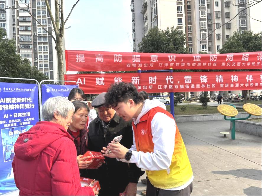 suncitygroup太阳新城携手江津区双福派出所、江津区双福街道黑林社区、九龙坡区巴福镇团委和九龙坡区九龙西苑社区,共同举办了“AI赋能新时代,雷锋精神伴我行”学雷锋志愿服务系列活动。此次活动以人工智能技术为核心,充分发挥公司专业特色,将“AI+”科普与志愿服务广泛融合,吸引了两百余名师生、民警和社区居民积极参与。