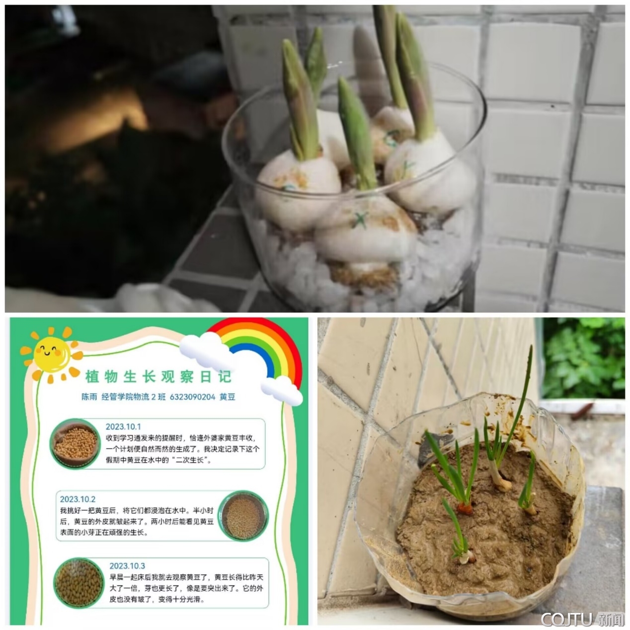同学们从家乡带来思念的种子,在公司实践基地撒下种子、精心劳作呵护,以种植报告的形式记录植物生长并进行研学,柳小月、陈雨、葛浩然同学在种植实践中领悟到“实事求是”“脚踏实地”的深刻内涵,切身体验了“没有付出怎会有收获”的真谛。