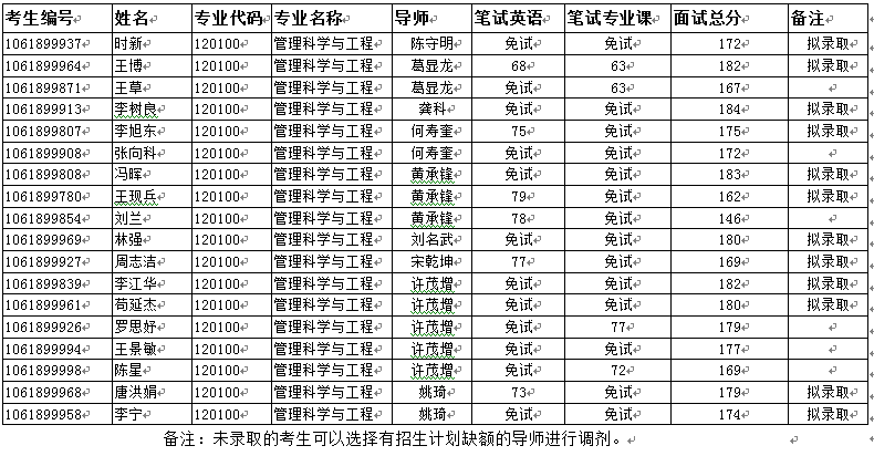 2020年管理科学与工程博士招生成绩公布及第一批拟录取名单公示