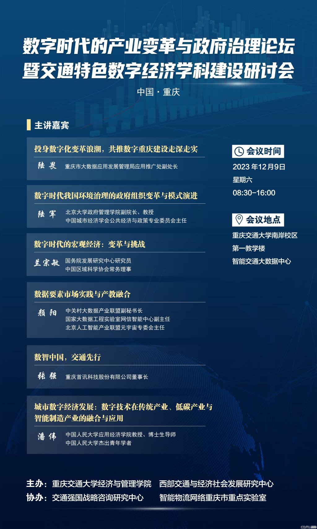 学术会议:数字时代的产业变革与政府治理论坛暨交通特色数字经济团队建设研讨会