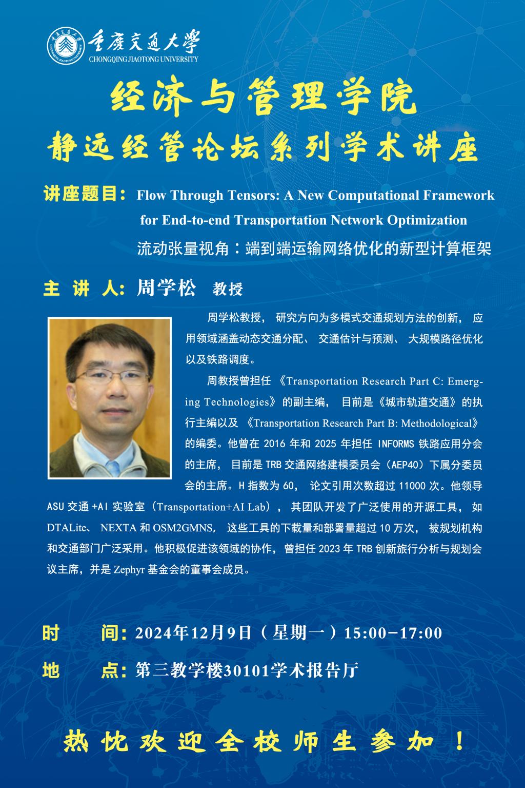静远经管论坛:流动张量视角:端到端运输网络优化的新型计算框架